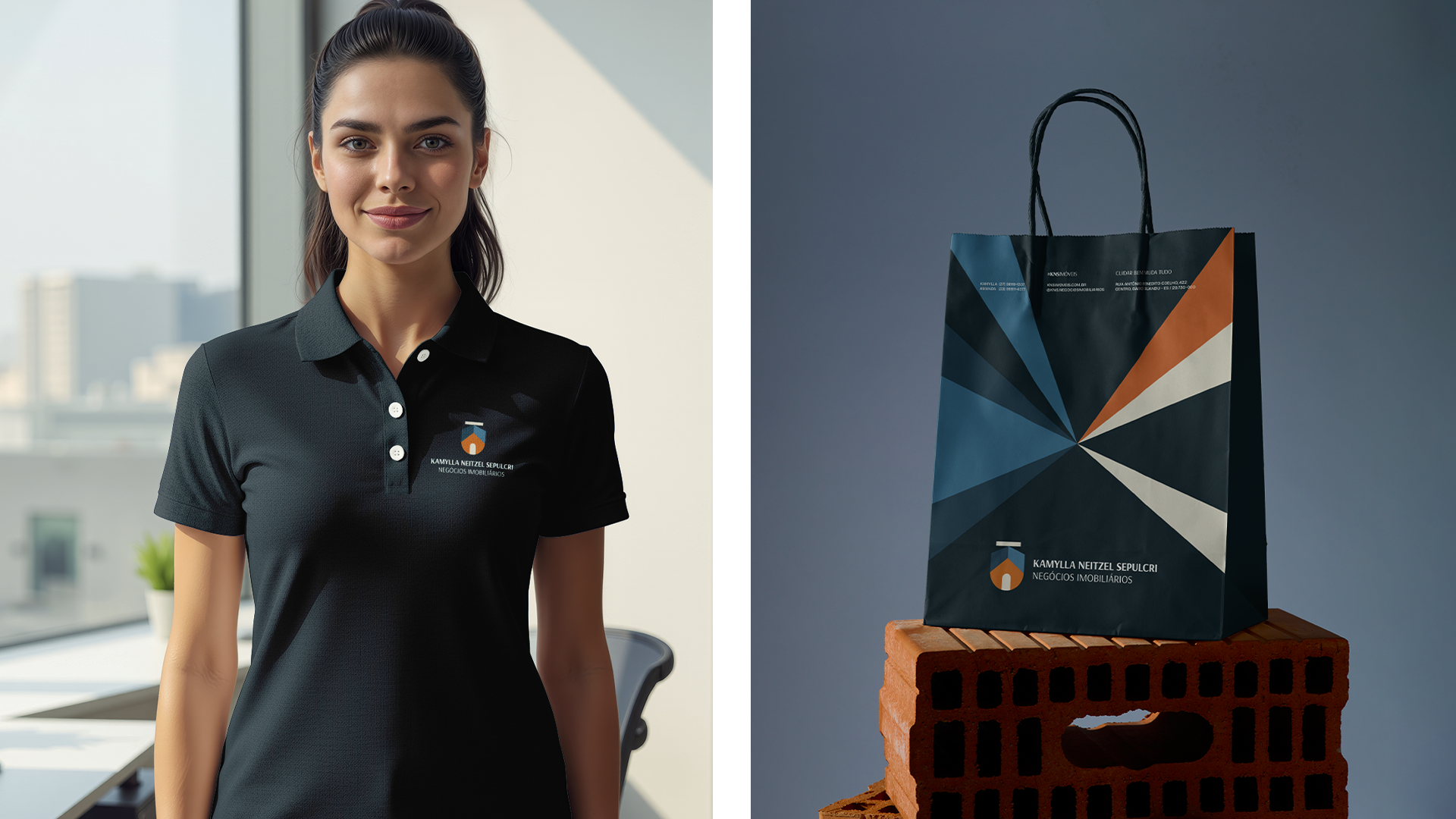 A letra “K” foi transformada em elemento arquitetônico, sugerindo a estrutura do telhado e reforçando origem e autoria. O escudo introduziu a ideia de proteção e condução, fortalecendo a percepção de confiança. A partir dessa base, desenvolveu-se uma linguagem visual consistente, preparada para adaptação e reconhecimento no longo prazo.